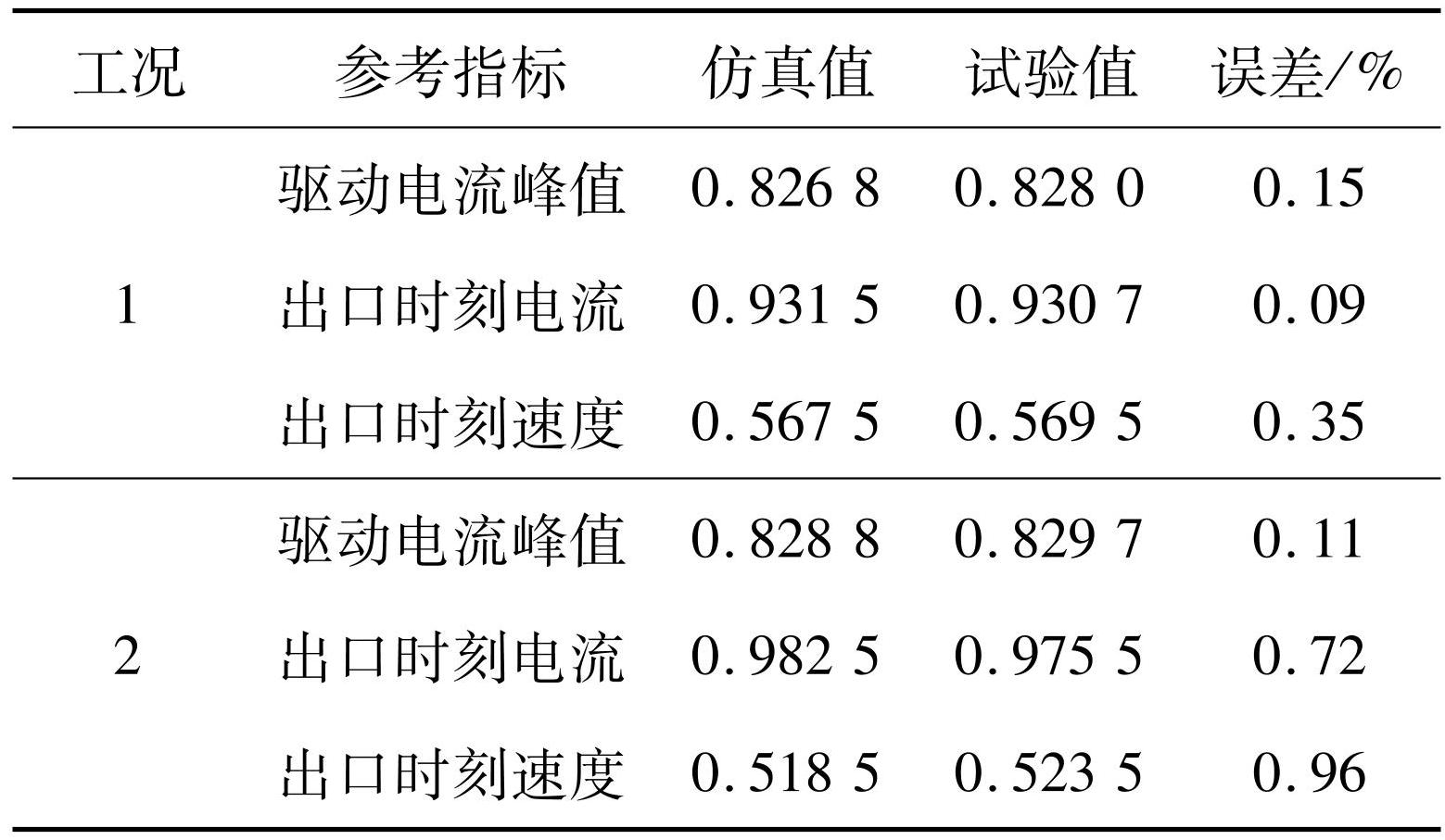 注:误差=(|试验值-仿真值|/试验值)×100%。