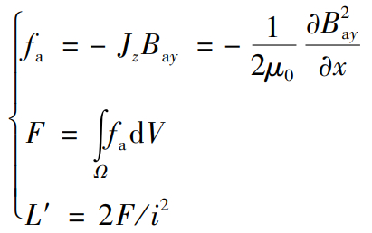 电枢推力F沿x轴方向,其体积力密度fa及对应的电枢电感梯度L′计算公式[22]为: