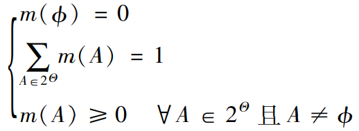 定义2 mass函数:设A为幂集2Θ中的任一命题,A∈2Θ,函数m为集合2Θ→[0,1]的映射,且满足