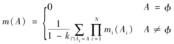 定义3 组合规则:设m1,m2,···,mN分别为识别框架Θ上N个证据的mass函数,则DS组合规则定义为