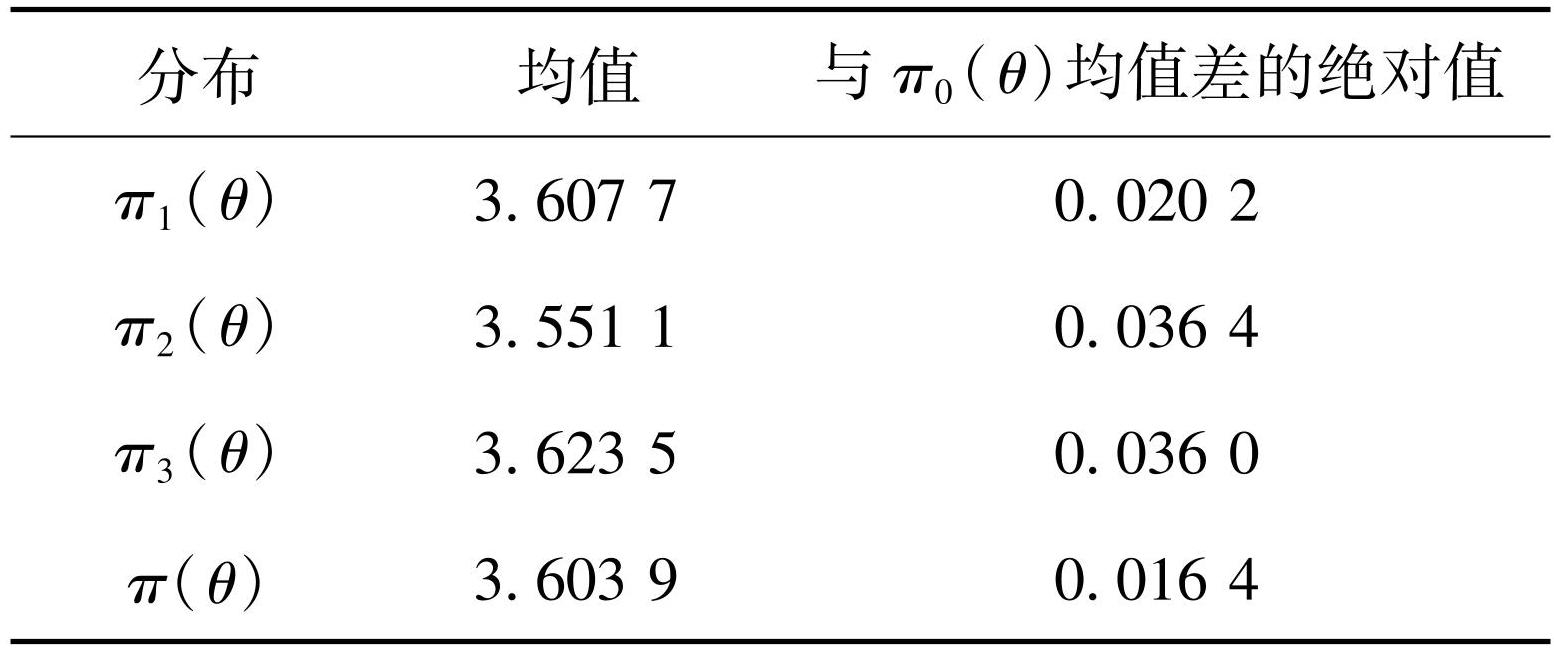 从图8和表5可以看出,融合后的先验分布π(θ)与各单独数据源的先验分布相比,更贴近于现场分布π0(θ),进一步验证了所提方法能较好地融合多源先验分布。
