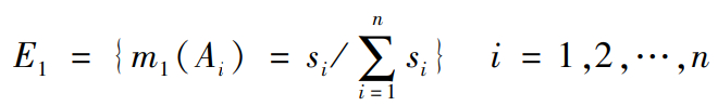 则称m为Θ上的mass函数或基本概率赋值(basic probability assignment,BPA)函数,m(A)为命题A的BPA,表示证据对命题A的支持度。如果m(A)>0,则称命题A为焦元。使用向量mi表示第i个证据的BPA,mi=[mi(A1),mi(A2),···,mi(An)](i=1,2,···,M),Ψ={A1,A2,···,An}为证据mi中所有焦元的集合(A1,A2,···,),每一个命题Aj(j=1,2,···,n)都有确定的m(Aj)。