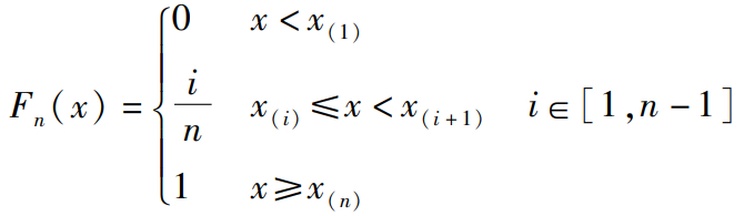 设某源维修性数据为X=[x1,x2,···,xn],xi~F(x)(i=1,2,···,n)将X中数据按升序排列,记为x(1),x(2),···,x(n),构造经验分布函数Fn(x):
