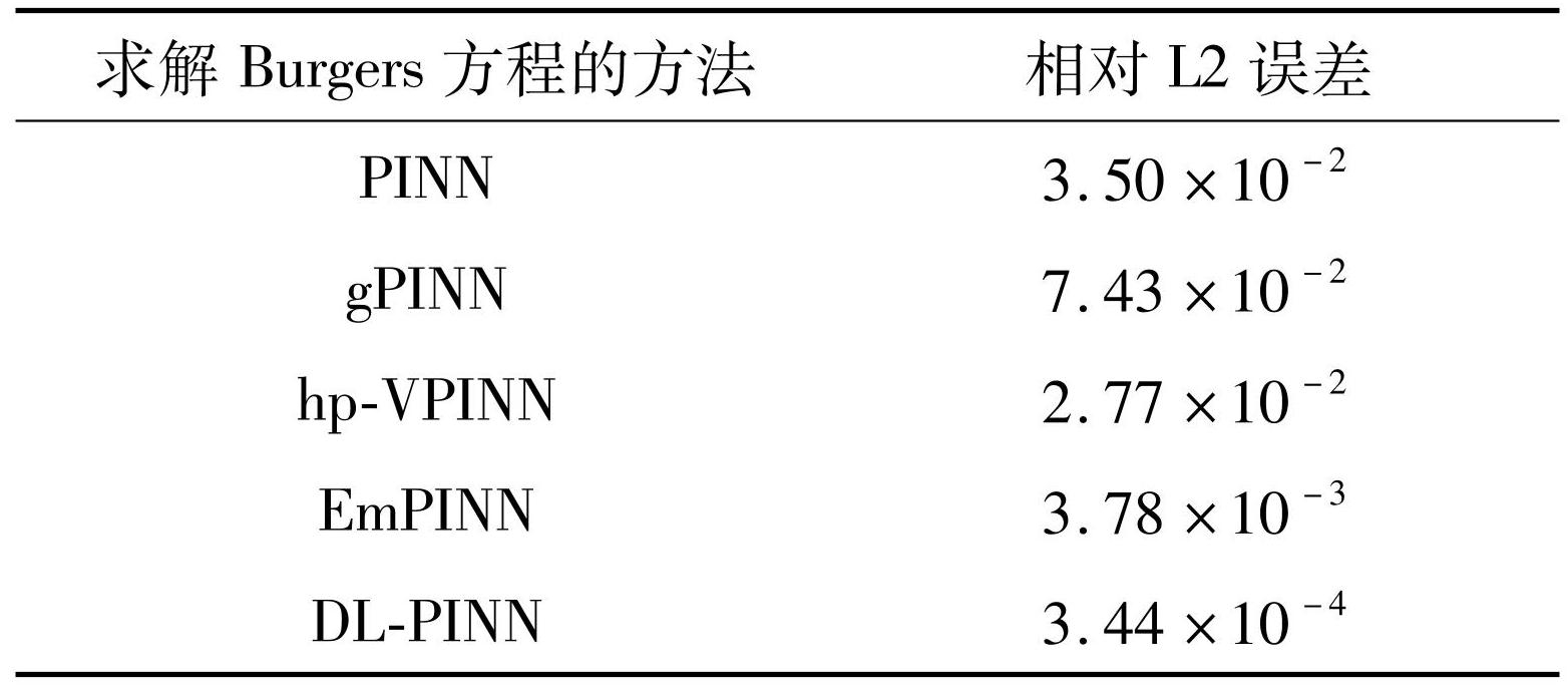 Tab.3Comparison of the relative L2-error of different methods on Burgers′ equation